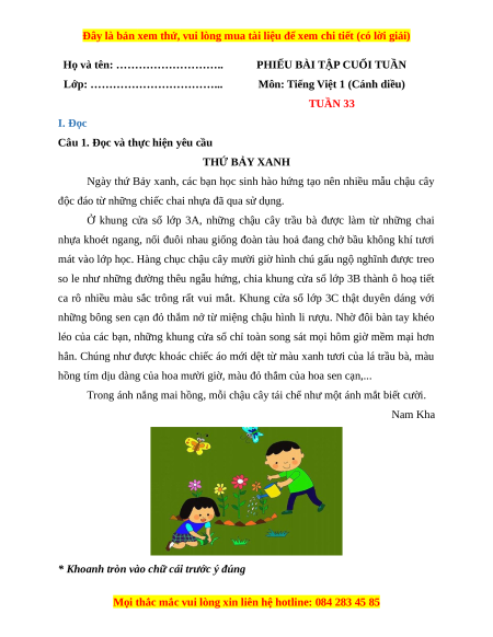 Câu 1. Đọc và thực hiện yêu cầu THỨ BẢY XANH