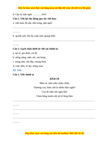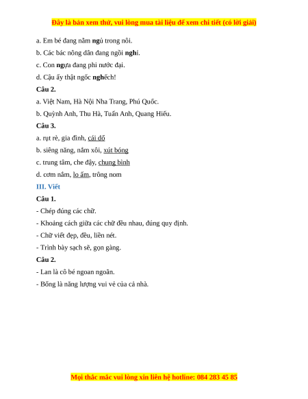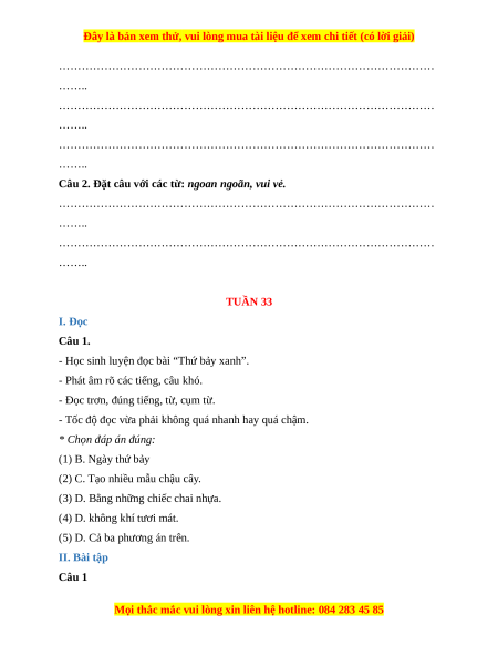 ……………………………………………………………………………………… …….. TUẦN 33 I. Đọc Câu 1.