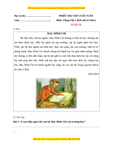 Môn: Tiếng Việt 1 (Kết nối tri thức) TUẦN 33 I. Đọc MẠC ĐĨNH CHI