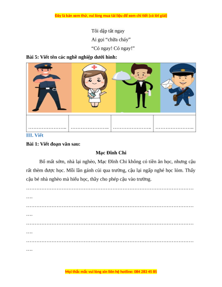 Bài 5: Viết tên các nghề nghiệp dưới hình: