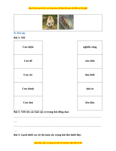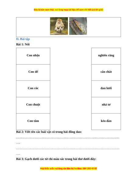 II. Bài tập Bài 1: Nối Con nhện nghiến răng Con dế cắn chắt Con cóc đan lưới Con chuột nhả tơ Con tằm kéo đàn