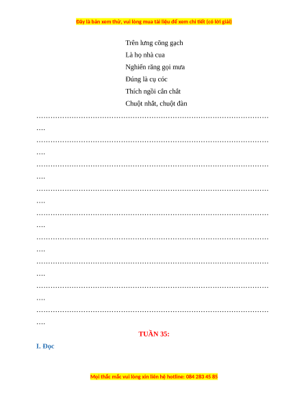 ……………………………………………………………………………………… …. TUẦN 35: I. Đọc