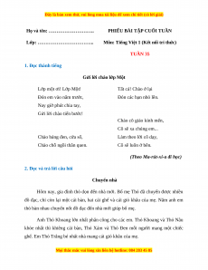 PHIẾU BÀI TẬP CUỐI TUẦN
