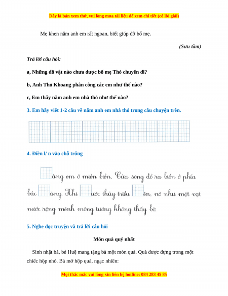 5. Nghe đọc truyện và trả lời câu hỏi Món quà quý nhất