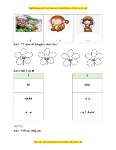 Bài 3: Tô màu vào bông hoa chứa âm i. Bài 4: Nối A với B A B bé bị ho chị hà có cá ở chợ che ô cho bé III. Viết
