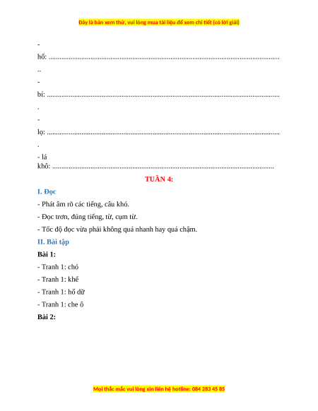 khô: .......................................................................................................................... TUẦN 4: I. Đọc