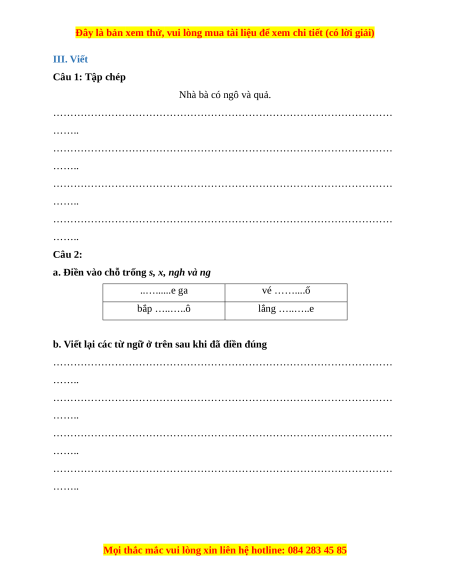 a. Điền vào chỗ trống s, x, ngh và ng ..…......e ga vé ……....ố bắp …..…..ô lắng …..…..e