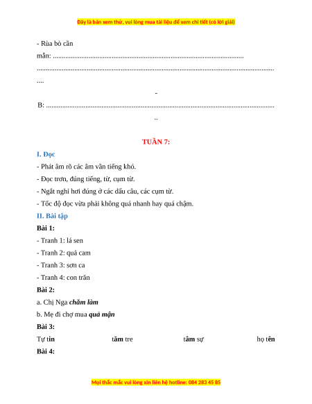 B: ................................................................................................................................ .. TUẦN 7: I. Đọc