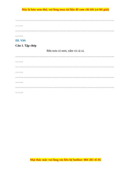……………………………………………………………………………………… …….. III. Viết Câu 1. Tập chép