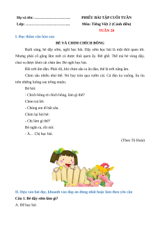 - Tailieugiaovien.com.vn giới thiệu phiếu bài tập cuối tuần môn Tiếng việt lớp 2 bộ Cánh diều mới nhất nhằm giúp Giáo viên có thêm tài liệu tham khảo Tiếng việt lớp 2.