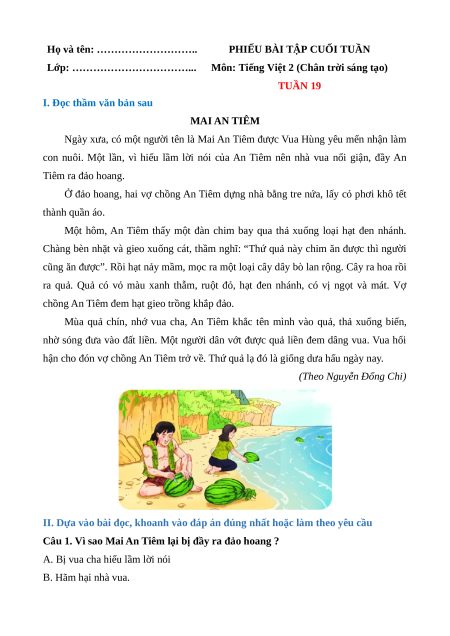 I. Đọc thầm văn bản sau MAI AN TIÊM