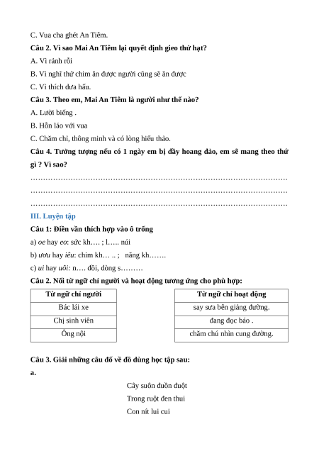 …………………………………………………………………………………………. III. Luyện tập