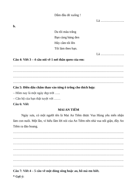 – Căn hộ của bạn thật tuyệt vời …… Câu 6: Viết MAI AN TIÊM