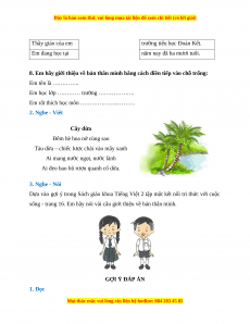 8. Em hãy giới thiệu về bản thân mình bằng cách điền tiếp vào chỗ trống: Em tên là …………..