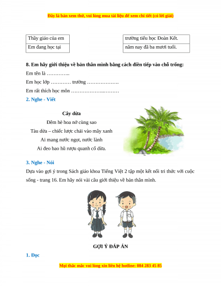sống - trang 16. Em hãy nói vài câu giới thiệu về bản thân mình. GỢI Ý ĐÁP ÁN 1. Đọc