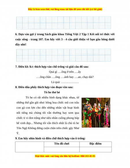 6. Dựa vào gợi ý trong Sách giáo khoa Tiếng Việt 2 Tập 1 Kết nối tri thức với