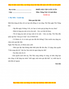 PHIẾU BÀI TẬP CUỐI TUẦN