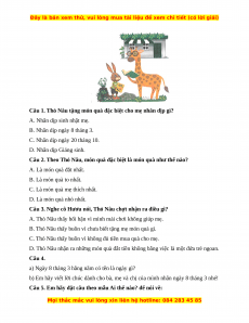 Câu 1. Thỏ Nâu tặng món quà đặc biệt cho mẹ nhân dịp gì?