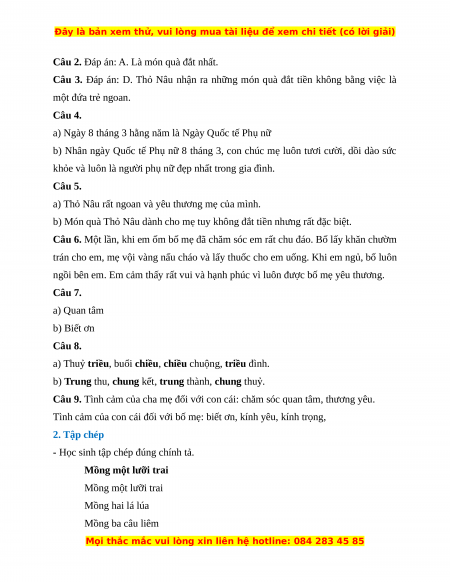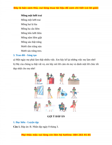 b) Mẹ của chúng ta thật vất vả, em hãy nói lời cảm ơn mẹ và dành một lời chúc tốt đẹp nhất cho mẹ nhé! GỢI Ý ĐÁP ÁN