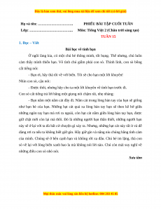 PHIẾU BÀI TẬP CUỐI TUẦN