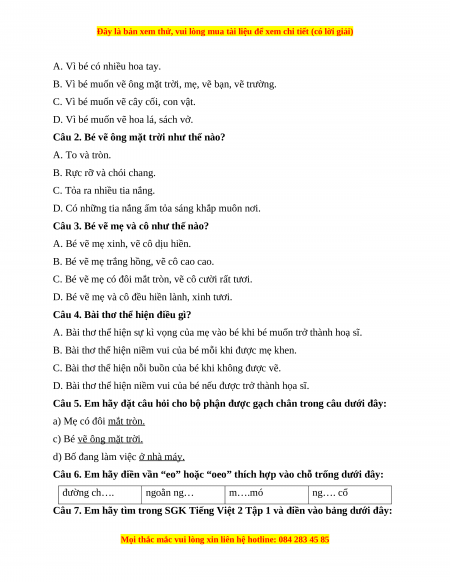 Đây là bản xem thử, vui lòng mua tài liệu để xem chi tiết (có lời giải)
