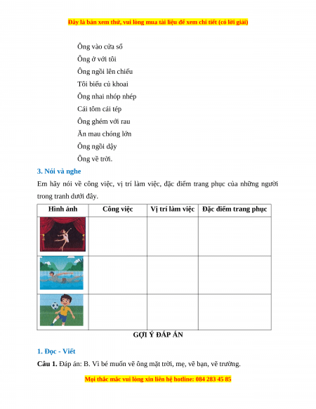Vị trí làm việc Đặc điểm trang phục GỢI Ý ĐÁP ÁN 1. Đọc - Viết