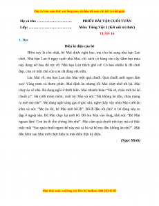 PHIẾU BÀI TẬP CUỐI TUẦN