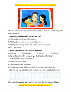 Dựa vào nội dung bài đọc trên, khoanh vào chữ cái trước câu trả lời đúng hoặc làm theo yêu cầu.