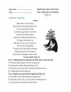 PHIẾU BÀI TẬP CUỐI TUẦN