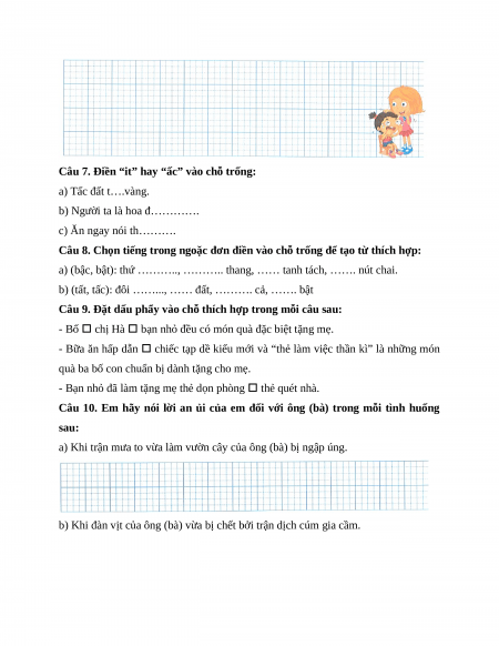 Câu 7. Điền “it” hay “ấc” vào chỗ trống: