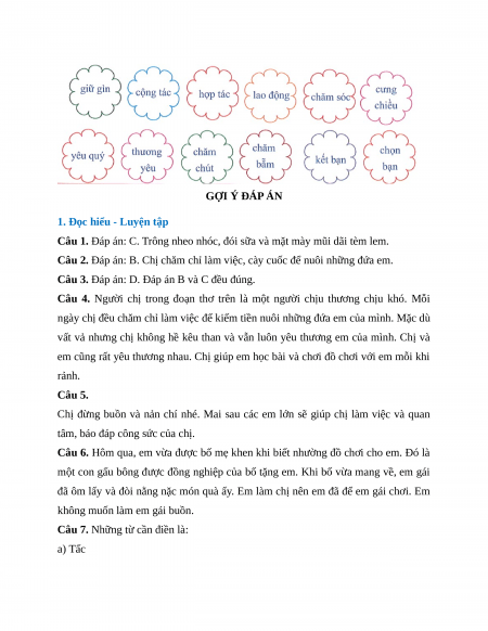 Câu 2. Đáp án: B. Chị chăm chỉ làm việc, cày cuốc để nuôi những đứa em.