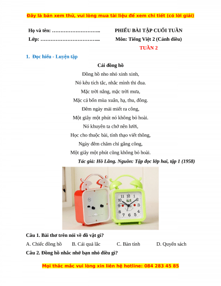Câu 1. Đáp án: A. Chiếc đồng hồ