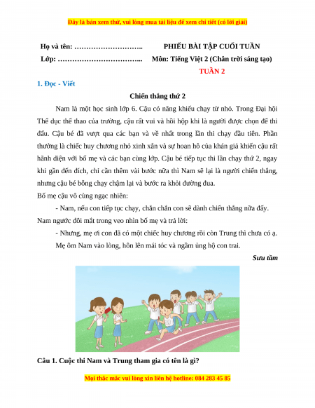 Môn: Tiếng Việt 2 (Chân trời sáng tạo) TUẦN 2 1. Đọc - Viết Chiến thắng thứ 2