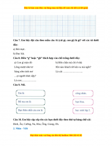 Câu 8. Điền “g” hoặc “gh” thích hợp vào chỗ trống dưới đây: