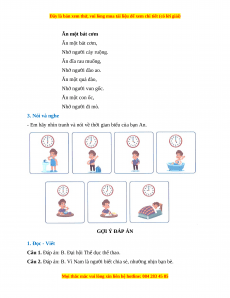 Ăn một bát cơm Ăn một bát cơm, Nhớ người cày ruộng. Ăn đĩa rau muống, Nhớ người đào ao. Ăn một quả đào, Nhớ người vun gốc. Ăn một con ốc, Nhớ người đi mò. 3. Nói và nghe