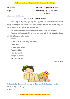 - Tailieugiaovien.com.vn giới thiệu phiếu bài tập cuối tuần môn Tiếng việt lớp 2 bộ Cánh diều mới nhất năm 2023 nhằm giúp Giáo viên có thêm tài liệu tham khảo Tiếng việt lớp 2.