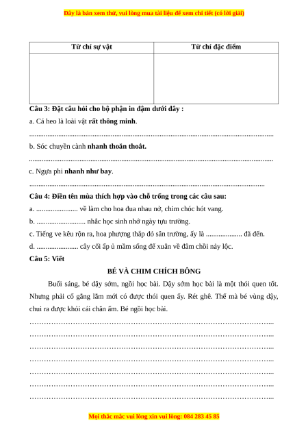 Câu 3. Loài chim xuất hiện trong bài là chim gì? A. Chim chích chòe B. Chim sâu C. Chim chích bông