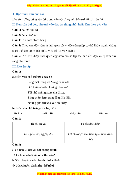 II. Dựa vào bài đọc, khoanh vào đáp án đúng nhất hoặc làm theo yêu cầu