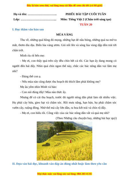 I. Đọc thầm văn bản sau MÙA VÀNG