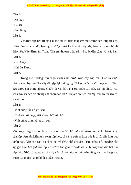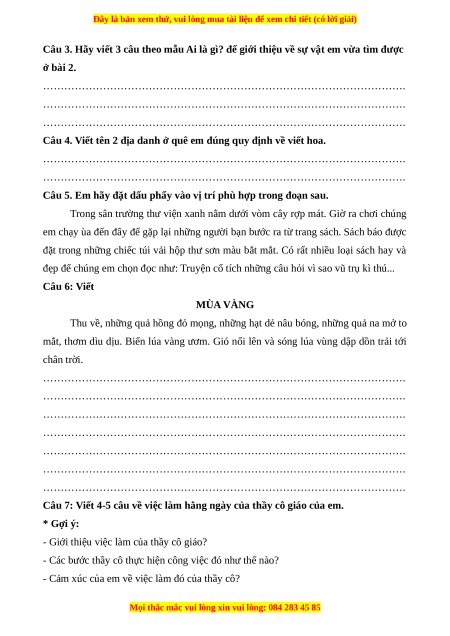 Câu 7: Viết 4-5 câu về việc làm hằng ngày của thầy cô giáo của em. * Gợi ý: