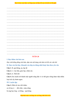 Môn: Tiếng Việt 2 (Chân trời sáng tạo) TUẦN 20