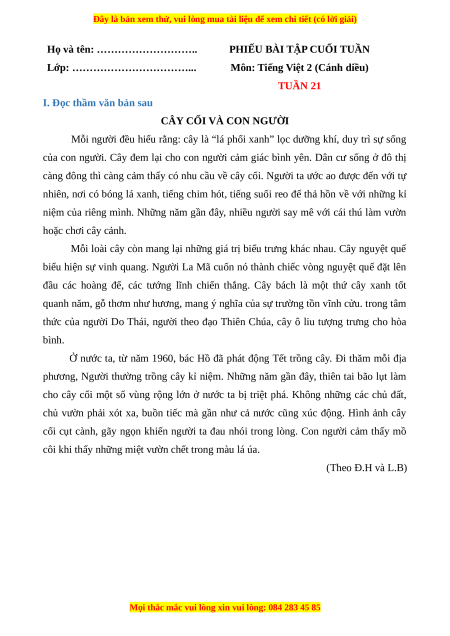- Tailieugiaovien.com.vn giới thiệu phiếu bài tập cuối tuần môn Tiếng việt lớp 2 bộ Cánh diều mới nhất năm 2023 nhằm giúp Giáo viên có thêm tài liệu tham khảo Tiếng việt lớp 2.
