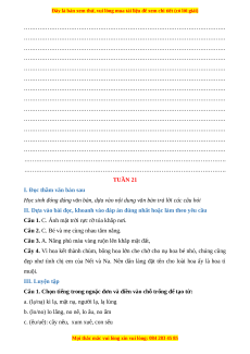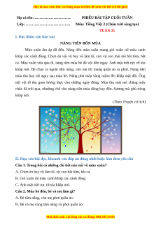 Môn: Tiếng Việt 2 (Chân trời sáng tạo) TUẦN 21