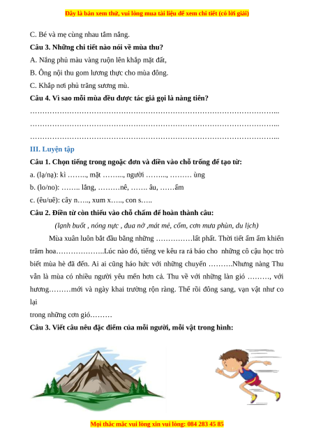 (lạnh buốt , nóng nực , đua nở ,mát mẻ, cốm, cơn mưa phùn, du lịch)