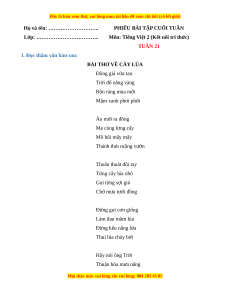 Môn: Tiếng Việt 2 (Kết nối tri thức) TUẦN 21