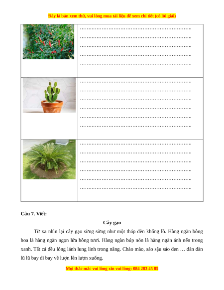 …….………………………………………………….. Câu 7. Viết: Cây gạo