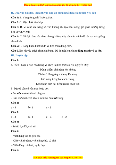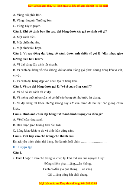 Câu 2. Khi vỗ cánh bay lên cao, đại bàng được tác giả so sánh với gì? A. Một cánh diều. B. Một chiếc thuyền. C. Một chiếc tàu lượn.