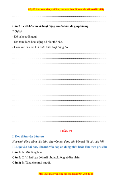 Câu 7 : Viết 4-5 câu về hoạt động em đã làm để giúp bố mẹ * Gợi ý - Đó là hoạt động gì