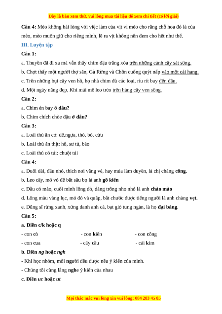 b. Leo cây, mổ vỏ để bắt sâu bọ là anh ……….............................................................