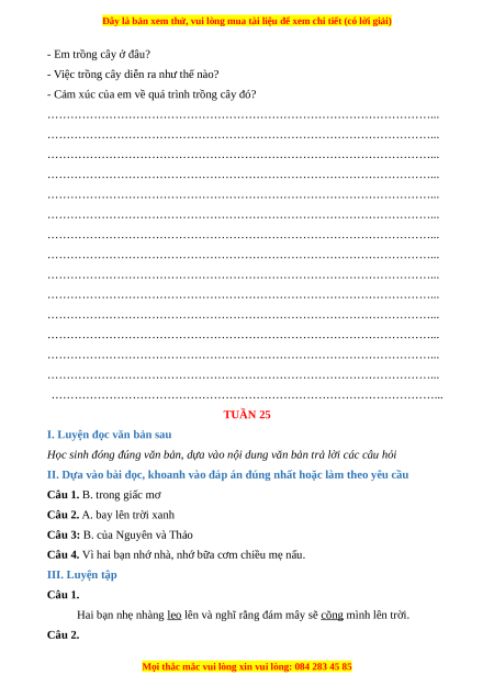 Câu 7: Viết 4-5 câu thuật lại việc em trồng cây. * Gợi ý: